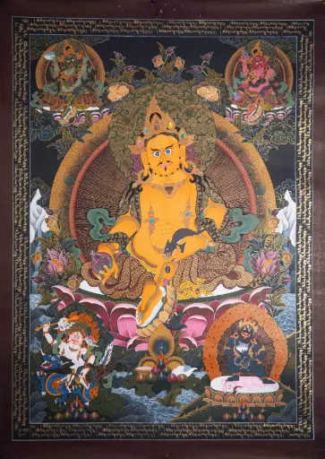 Five Jambhala Thangka (Nagthang Black-Gold Style)