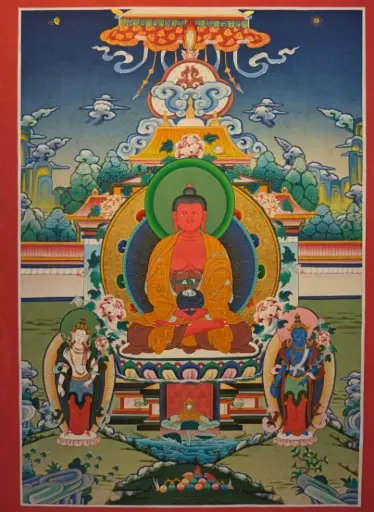 Amitabha Buddha Thangka – Menri Style – Radiant Light of Boundless Peace