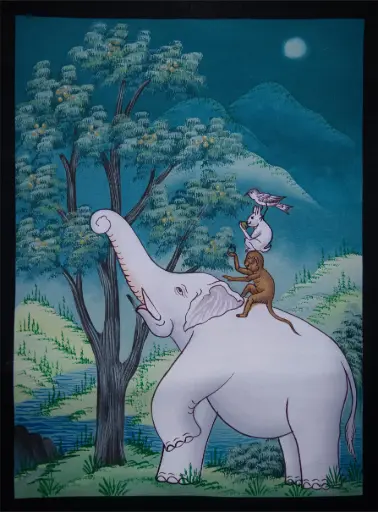Four Harmonious Friends Thangka (Thunpa Punzhi)