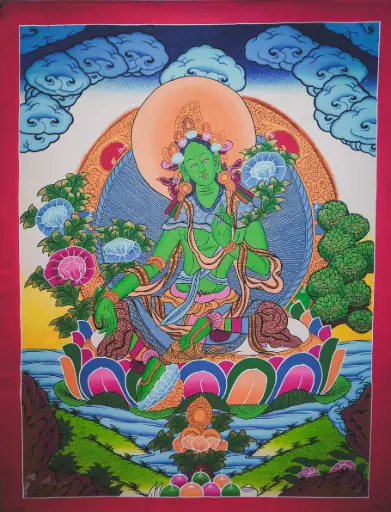 Green Tara Thangka – Menri Terrestrial Landscape
